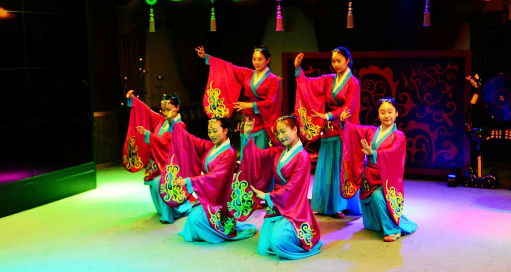 文化演藝是文化產(chǎn)業(yè)體系中極具創(chuàng)意性質(zhì)和輻射拉動(dòng)作用的的核心產(chǎn)業(yè)之一。《楚漢舞蹈》依托宿遷項(xiàng)王故里景區(qū)策劃運(yùn)營(yíng),漢代乃禮儀之邦,楚漢時(shí)期的琵琶曲也為之盛名,舞蹈由十名女舞者身著漢代時(shí)期服裝,在琵琶古樂的背景下,運(yùn)用民族舞漢代時(shí)期典型的風(fēng)格特色,來尋求漢代禮儀之邦的文化場(chǎng)景。