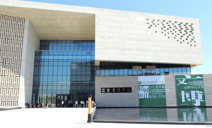 金螳螂文化公司在新疆建設的“文化磐石,精神綠洲”昌吉文博中心,以記憶昌吉、美麗昌吉、活力昌吉、開放昌吉、智慧昌吉、幸福昌吉、和諧昌吉、感恩昌吉和筑夢昌吉為主要內容,集中展現了昌吉文化發展和改革開放成就,是昌吉市新的文化標志。
