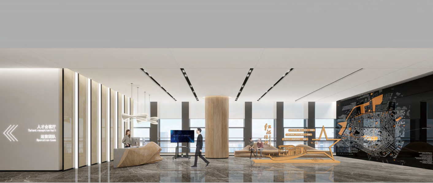科技感、現代感、生態感具足的人才大廈空間中,高科技互動、大數據智能、專業化服務相互交融。