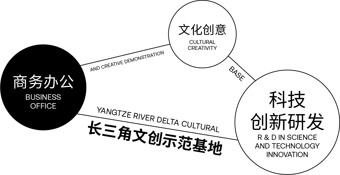 項目定位為企業總部大樓,打造集商務辦公、文化創意、展陳策劃、設計孵化、大師工作室、科技創新研發為一體的長三角文創示范基地。