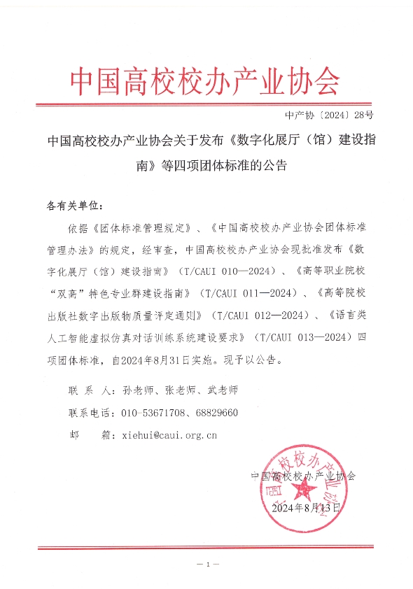 本團體標準由中國高校校辦產業協會提出并歸口,中國國家博物館、上海戲劇學院、蘇州金螳螂文化發展股份有限公司、中國科普研究所、中國建筑設計研究院室內空間院、山東大學博物館、北京市科學技術研究院等單位共同起草編制
