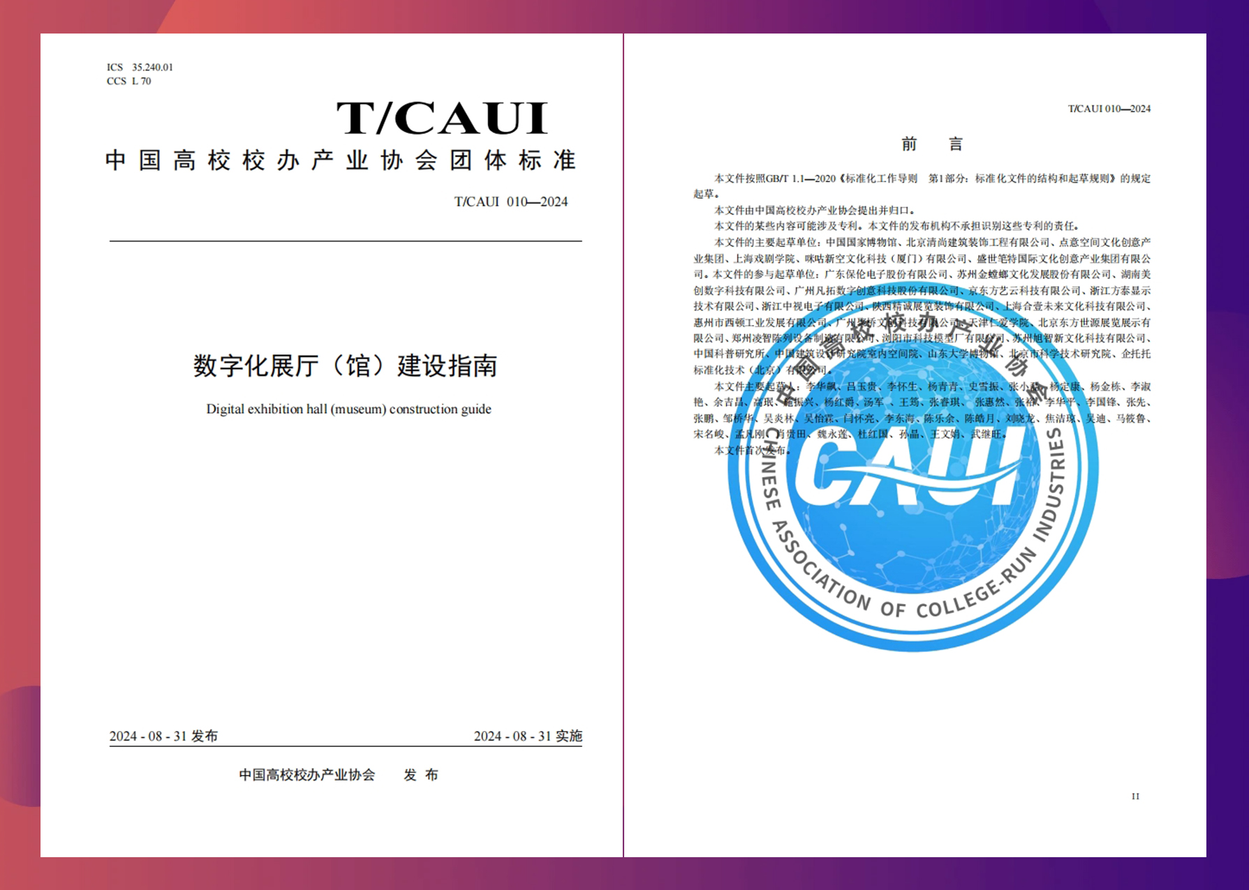 近日,金螳螂文化參編的《數字化展廳(館)建設指南》(T/CAUI 010—2024)正式發布。