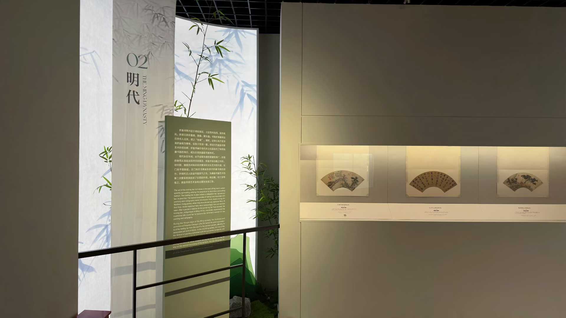 輔線展品以立軸、手卷等形式,呈現繪畫中的扇文化內涵,其展示設計以“竹”為視覺元素,營造清雅意境,突出扇文化所蘊含的文人精神追求。