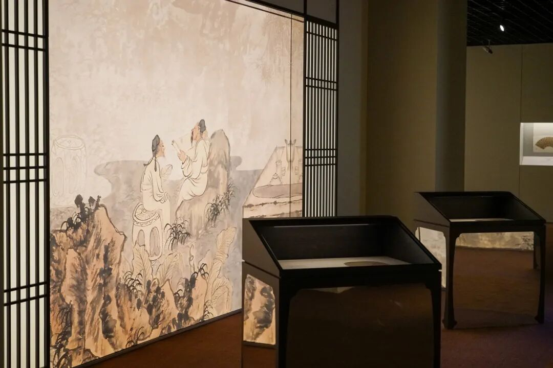 主線展示聚焦扇面書畫的發展脈絡,空間設計融入宋式建筑、明清園林及文人書齋的美學理念,通過由大到小、由外及內的空間序列,形成連貫的觀展流線。